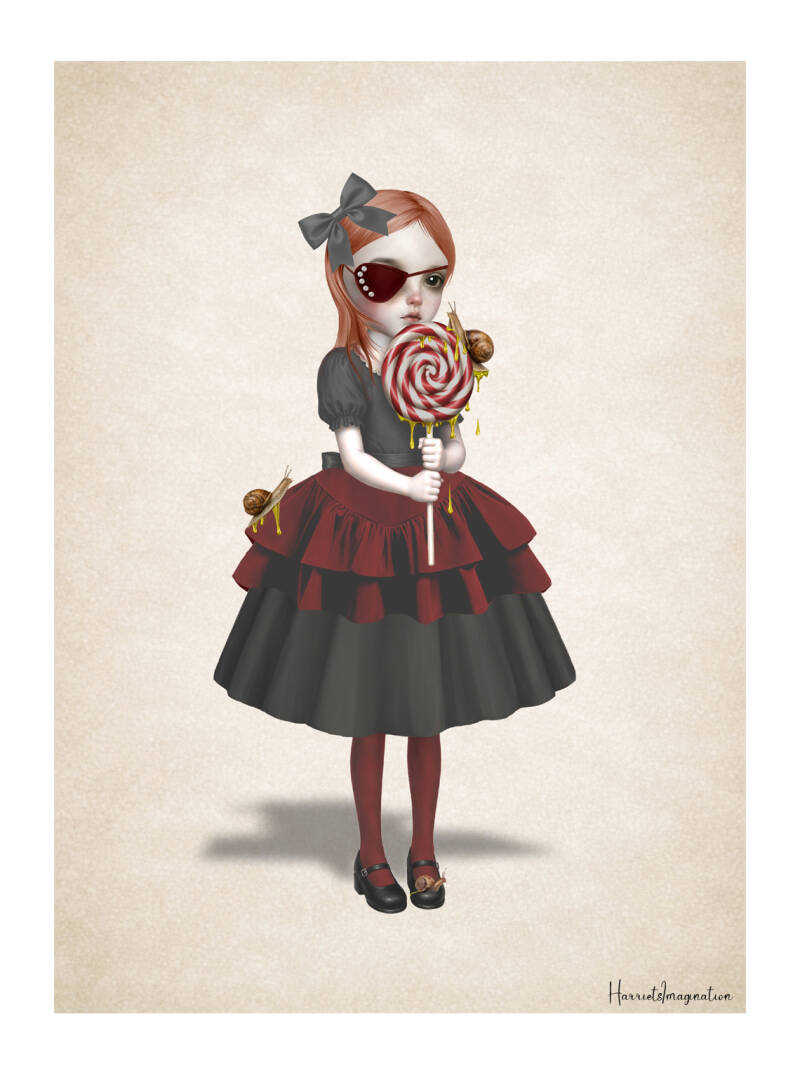 Through HarrietsImagination, I create art prints, ACEO cards, and illustrated pieces that invite viewers into a beautifully strange world — one where innocence and darkness exist side by side.